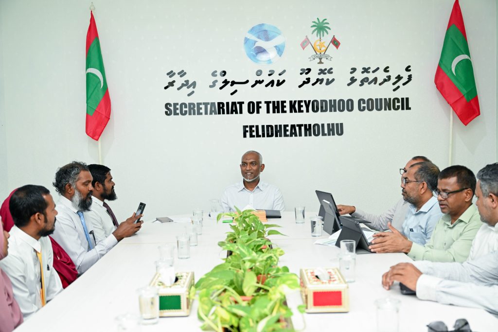 ކެޔޮދޫ ކައުންސިލުން މިގޮތަށް އެދުނީ އ.ތ.މ ކޮމިޓީ އަދި ރަށުގެ ބައެއް މުއައްސަސާތަކުގެ އިސްވެރިންނާ އެކު ރައިސުލްޖުމްހުރިއްޔާ ޑރ. މުހައްމަދު މުއިއްޒު ބޭއްވެވި ބައްދަލުވުމުގަ އެވެ. ރައްޔިތުންނަށް އެންމެ މުހިންމު ކަންކަމާ ގުޅޭގޮތުން އެ ބައްދަލުވުމުގައި ވަނީ މަޝްވަރާކޮށްފަ އެވެ.