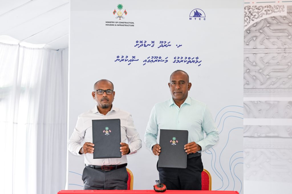 މި މަޝްރޫއުގެ އެއްބަސްވުމުގައ،ި މިނިސްޓްރީ އޮފް ކޮންސްޓްރަކްޝަނ،ް ހައުސިން އެންޑް އިންފްރާސްޓްރަކްޗާގެ ފަރާތުން ސޮއިއެކުރެއްވީ ސްޓޭޓް މިނިސްޓަރު ހަސަން ރަޝީދު އެވެ. އެމްޓީސީސީގެ ފަރާތުން ސޮއިކުރެއްވީ އެ ކުންފުނީގެ މެނޭޖިން ޑިރެކްޓަރު އަހުމަދު ސައުދީ އެވެ.